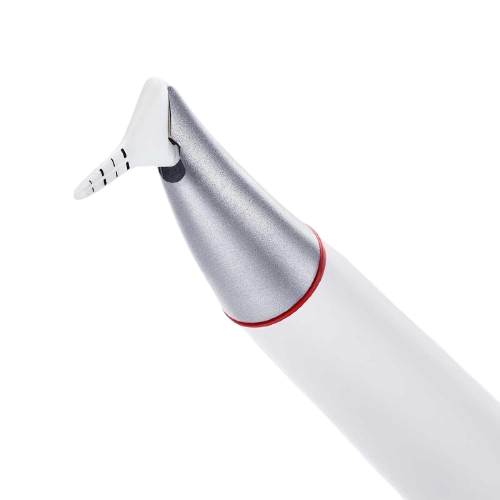 - Dreiseitige Pulveraustrittsöffnungen + apikale Wasseröffnung → effektive Biofilmentfernung (Vortex-Prinzip)