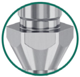 • Die zylindisch-konische Form und die ideale Höhe des kieferorthopädischen Kopfs gewährleisten eine geeignete Auflagefläche für laterale Belastungen und erleichtern das Einsetzen von angepassten Produkten insbesondere im Fall von Disparallelität.